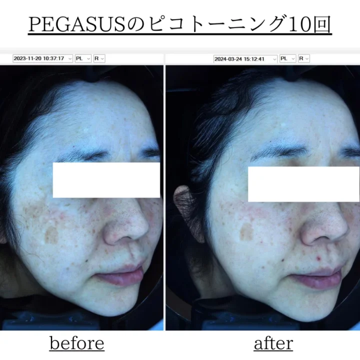 | 施術のリスク(副反応) | 発赤・灼熱感・乾燥・痒み・かさぶた・点状出血・シミが一時的に濃くなる:数日~1週間程度 |
