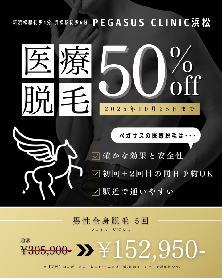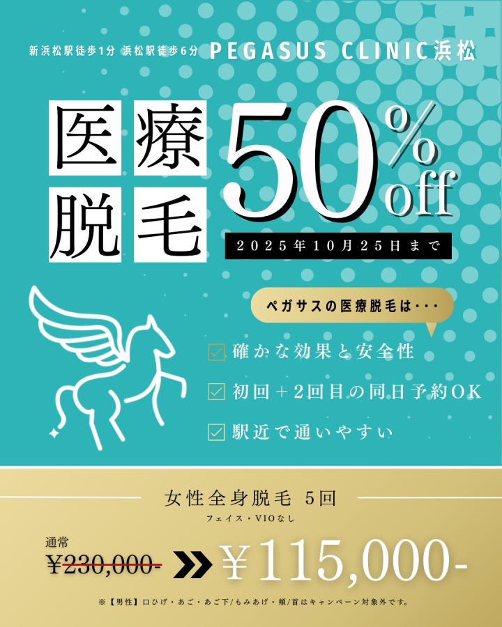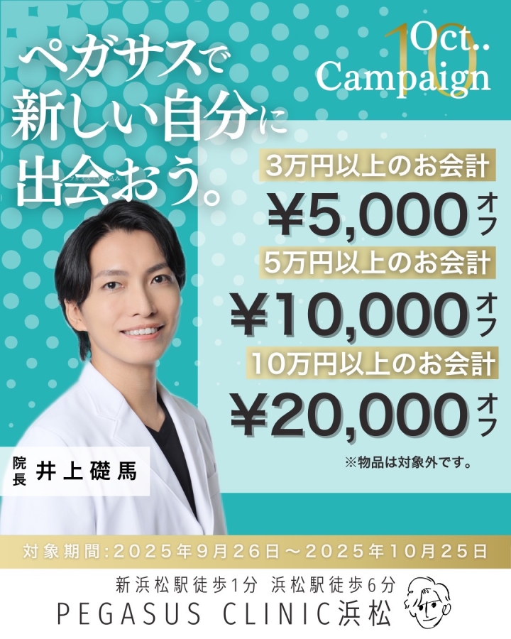 Instagramはこちら @pegasus_clinic.hamamatsu ※お会計時に画面のご提示をお願いいたします。 ※人数限定につき、ご希望の方はお早めにどうぞ。 |