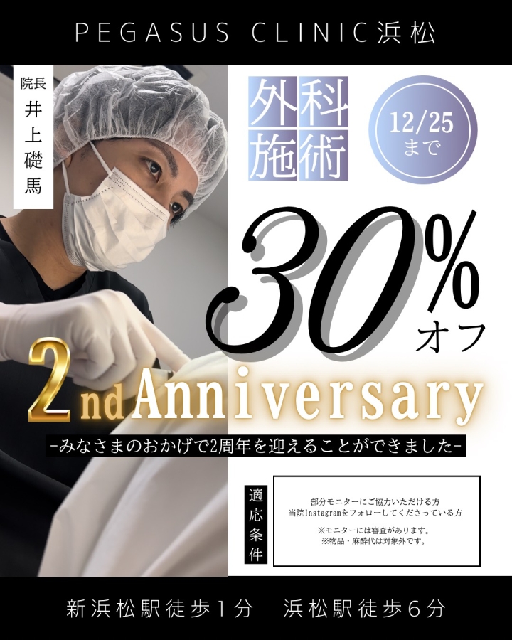 興味はあったけど今までは予算オーバーで諦めていた・・・。そんな方に朗報です!開院2周年の感謝を込めて今年もやります!!!外科施術30%OFF✨